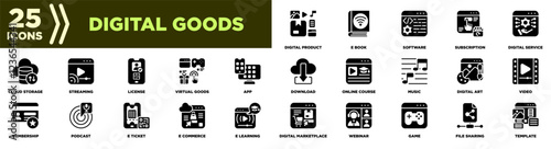software, subscription, streaming, licence, app, download, music, digital artwork, video, membership, podcast, e-ticket, e-business, e-learning, game, template, icon, glyphs