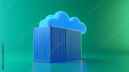 three-dimensional, container, cloud, storage, graphic, shipping, icon, symbolize, transformation, green, background, solution, system, artwork, management, business, logistic, design, process, migration, user, performance, cyberspace, remote, service, access, platform, software, resource, modern, technology