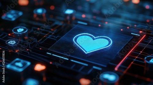 Digital Heart Icon Glowing Circuit Board Network Technology