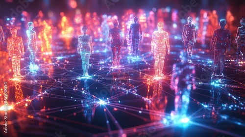 network, futuristic, technology, neon light, datum, interconnected, ai, artificial intelligence, communication, tech, glow, science fiction, people, abstract, innovation, cyberspace, node, light, social network, cybernetic, networking, digital artwork