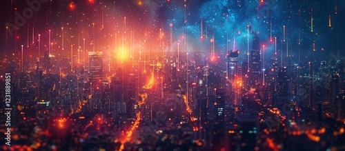 city, skyline, digital, glowing, line, night, urban, landscape, futuristic, city landscape, building, architecture, light, technology, red, blue, art, metropolis, high technology, future, abstract, modern, visual, bright, illuminated, sky, network, downtown, vibrant, panorama, energy, tech, illustration, skyscraper, development, infrastructure, neon, dense, bustling, nightlife, tower block, perspective, dynamic