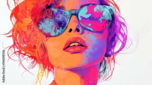 digital illustration of fashion model, vibrant colors, modern style, creative expression, isolated on white, high fashion, bold and confident