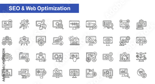 Digital Marketing & SEO Tools Line Icon Set for Web Optimization