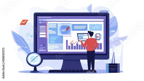 Digital Marketing: SEO specialist meticulously analyzing website traffic data on computer screen. Interpreting complex analytics to optimize online visibility, enhance search rankings, traffic growth