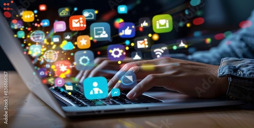 digital, marketing, hand, typing, laptop, datum, visualisation, online, advertising, businessman, social, media, communication, technology, strategy, cyberspace, promotion, business, icon, connection, networking, analysis, virtual, reality, global, modern, success, concept, growth, market, professional