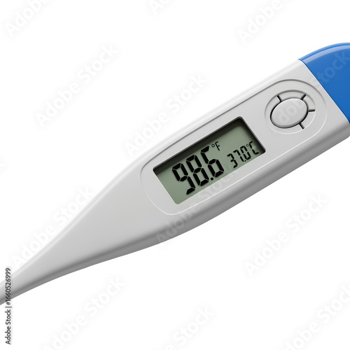 thermometer, digital, medicals, health, temperature, fever, disease, measurement, reading, body, health care, diagnostic, device, tool, clinical, patient, doctor, hospital, clinic, wellness, sick, normal, degree, fahrenheit, display, screen, electronic, instrument, isolate, white, blue, object, transparent, background