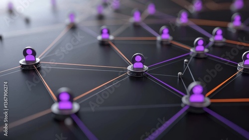 Digital network of glowing nodes and connections symbolizing communication and connectivity.