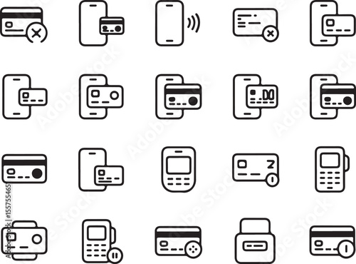 Digital Payment Icons: Streamlined set of digital payment icons, conveying the ease and security of modern transactions. Icons represent payment methods and technology.