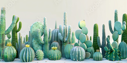botanical, light, group, desert, plant, prickly, pastel, arrangement, size, beige, collection, background, saguaro, rendering, cholla, succulent, spine, flora, barrel cactus, digital, shape, cactus, green, three-dimensional, texture, row, variety