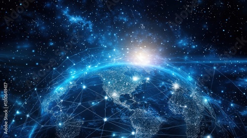 Digital revolution in international trade with a network of interconnected global businesses.