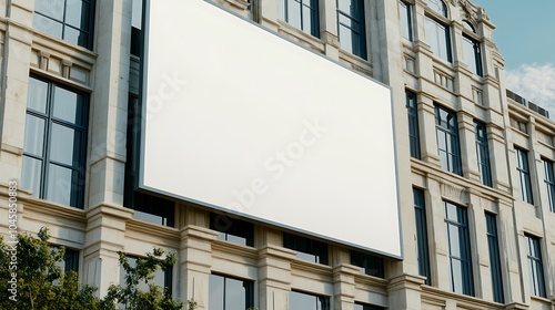 Digital signage on a luxury hotel with marble exterior The blank digital screen sits on the marble facade of a luxury hotel, adding a modern touch to the traditional, elegant materials of the building