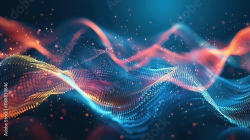 Digital wave with many dots and particles. Abstract dynamic wave background. Technology or science banner