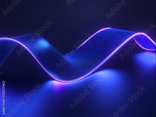 digital, waveform, illuminated, edge, blue, purple, glow, light, point, dark, background, abstract, form, wave, curve, ribbon, line, structure, texture, pattern, design, graphic, three-dimensional, rendered, image, technology, datum, network, flow, motion, energy, space, style, modern, abstract art, digital artwork, computer graphic, neon, bright, gradient