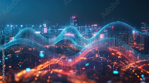 digital, wave, datum, flowing, city landscape, modern, technology, urban, life, fusion, motion, sleek, futuristic, design, high technology, visual, innovation, connected, tech, vibrant, evolution, concept, creative, interactive, smart, urbanisation, progress, illuminated, seamless, connectivity, advanced, transformation, business