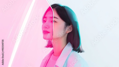 asian, japanese, korean, face, ai, woman, matrix, technology, digital, background, red, neon, cleaving, glasses, ribbed, mirror, surreal, privacy, disturbing, sensual, weird, office, pixel, art, beauty, innovation, girl, scam, futuristic, simulation, abstract, concept, robot, character, eye, spy, hologram, binary, future, space, pattern, blur, telecom, program, anonymous, virtual, health