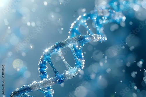 Digitally generated sparkling DNA helix against a soft bokeh background, symbolizing biotechnology and genetic research.