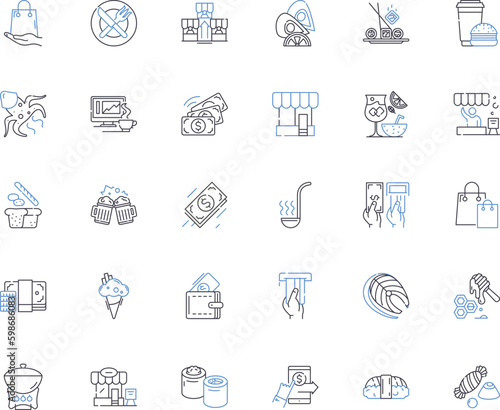 Diner line icons collection. Nostalgia, Greasy, Milkshake, Comfort, Jukebox, Pancakes, Retro vector and linear illustration. Homey,Booths,Patty melt outline signs set Generative AI