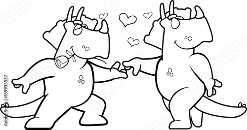 animal, cartoon, dance, dinosaur, heart, illustration, love, passion, reptile, romance, rose, triceratops, vector