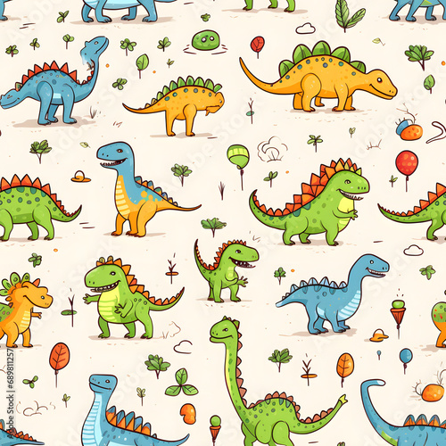 dinosaur, cartoon, animal, pattern, collection, drawing, children, cute, seamless, background