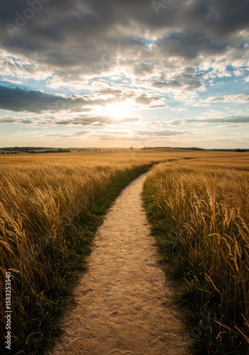 path, field, sunset, gold, hours, grass, summer, nature, landscape, rural, countryside, trail, road, way, journey, travel, adventure, horizon, sky, cloud, light, sun, yellow, brown, dirt, ground, texture, calm, peaceful, serene, tranquil, hopeful, optimistic, bright, day, evening, twilight, scene, view, scenery, photo, image, photo
