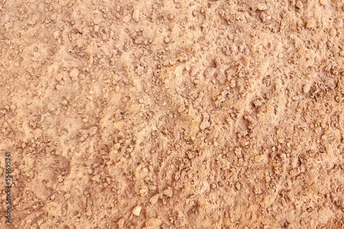 Dirt, terrain or gravel stone road cracked surface, Arid environmental global warming disaster. Nature background and texture photo.