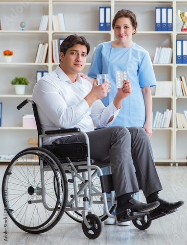 Disabled patient on wheelchair visiting doctor for regular check
