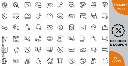 Discount and Coupon icon pack | Detailed Outline | Editable Stoke 60 icon | Victor illustrator.