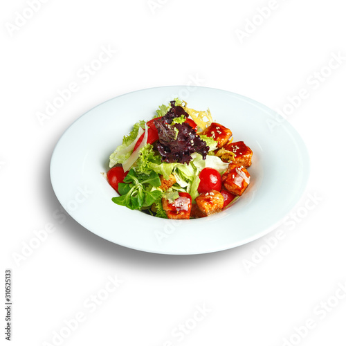 Dishes of traditional Russian cuisine. Restaurant serving. White background.