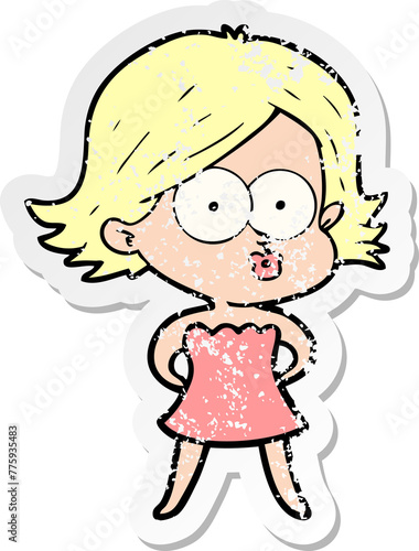 distressed sticker of a cartoon girl pouting