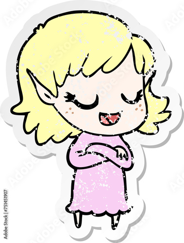 happy, elf, woman, female, girl, laughing, joy, content, expression, cartoon, sticker, distressed, grunge, realistic, torn, ripped, old, stick, on, icon, decal, label, drawing, illustration, retro, doodle, freehand, free, hand, drawn, quirky, art, artwork, funny, character
