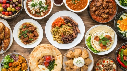Diverse Array of Delicious Global Cuisines on Wooden Table