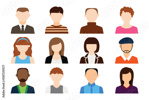 avatar, icon, profile, user, person, people, diverse, faceless, collection, set, illustration, design, website, graphic, interface, digital, visual, representation, ethnicity, coiffure, clothing, style, sex, male, female, human, figure, character, symbol, placeholder, template, modern, simple, minimalist, flat, colourful, variety, option, choice, selection, image, asset, resource, element, component