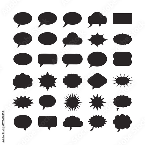 comic, communication, dialogue, chat, conversation, thought, message, notification, icon, symbol, graphic, design, vector, illustration, black, white, simple, modern, creative, abstract, shape, collection, set, empty, blank, text, talk, speak, speech, bubble, cloud, signs, cartoon, label, bubble, balloon, dialogue, element, shape