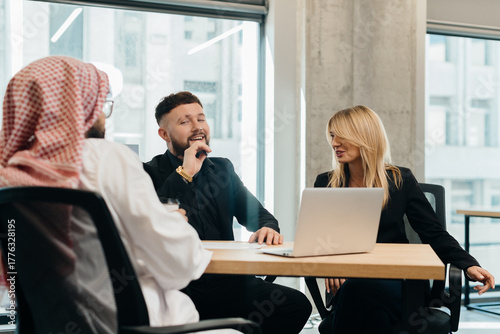 business, meeting, discussion, collaboration, corporate, office, diverse, people, teamwork, professional, executive, international, partnership, multiracial, workplace, success, global, manager, negotiation, brainstorming, agreements, working, modern, employee, communication, startup, consulting, strategy, conference, desk, laptop, happy, smiling, confident, planning, deal, cheerful, arab, middle, eastern, caucasian, financial, productivity, management, administration, economy, work, indoor