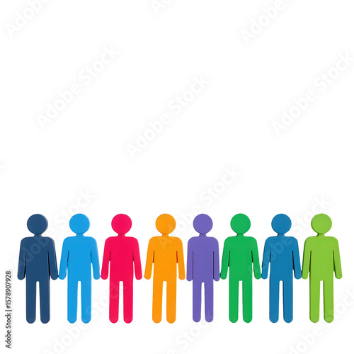 Diverse Group of Colorful Human Figures Standing in a Row Together