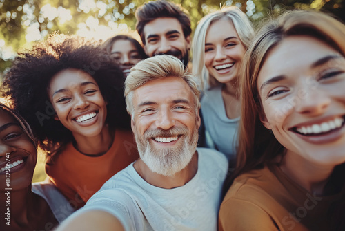 Diverse group of people smiling in joy, a unique crowd, ethnic diversity, different cultures, family, multicultural friends, cultural mixing pot, professional portrait photo, high resolution