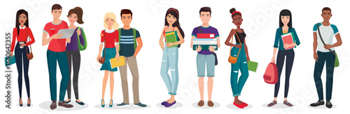 character, student, people, boy, group, vector, hipster, cartoon, young, clothes, college, woman, different, diverse, school, set, girl, female, flat, person, happy, business, fashion, businessman, education, backpack, office, design, illustration, smiling, american, teenage, teenage, isolated, study, university, african, hispanic, laptop, phone, hot drink, modern, background, freelance, businesswoman, cyberspace, male, standing, holding, book