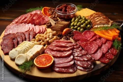 Diverse Meat platter appetizers. Food party. Generate Ai
