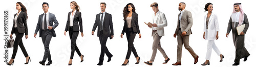 business attire, design element, multicultural, professional, confidently, environment, transparent, collection, corporate, executive, business, cut-out, diverse, walking, men at work, attire, office, people, group, team, set