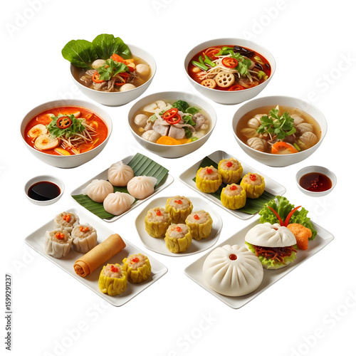 asian cuisine, soup, dumpling, spring roll, bun, dim sum, noodle, broth, meat, vegetable, soy sauce, food, cookery, eatery, meal, plate, dish, accessing, chinese food, thai food, japanese food, korean food, delicious, tasty, appetising, colourful, variety, assortment, traditional, asian, menu, food photography