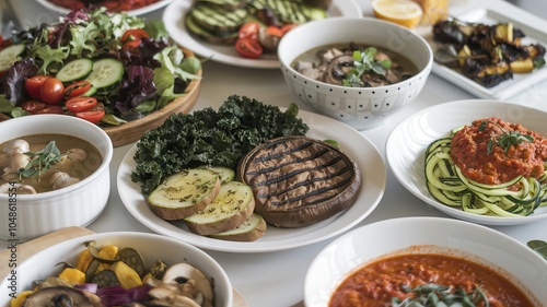 Diverse Spread of Vegan and Vegetarian Foods on Tabletop