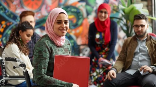 technology, group, teamwork, business, fashion, team, woman, diversity, smiling, young, cooperation, collaboration, meeting, office, laptop, urban, community, inclusion, success, indoor, oneness, man, corporate, workplace, professional, multicultural, sharpened, communication, modern, fresh, style, creative, diverse, co-worker, culture, leadership, adult, friendly, ethnic, engagement, contemporary, wheelchair, portrait