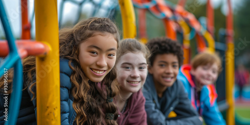 teenage, playground, friends, hanging out, diverse, youth, casual attire, group, multicultural, bonding, urban, leisure, enjoyment, smiling, activity, schoolyard, interaction