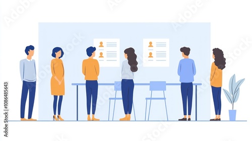 recruitment, diverse, hiring, process, employment, manpower, diversity, talent, selection, human, resource, job, interview, candidate, lineup, professional, team, workplace, concept, flat, design, manager, applicant, screening, hr, department, opportunity, inclusive, strategy, inclusion, modern, business, decision, minimalistic, style, acquisition