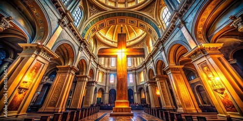 jesus christ, cross, crucifiction, faith, religion, christianity, spirituality, holy, sacred, church, cathedral, architecture, building, stone, wood, light, shadow, dramatic, powerful, hope, sacrifice, redemption, salvation, god, heaven, belief, worship, prayer, peace, love, forgiveness, grace, mercy, eternity, spiritual, biblical, gospel, testament, divine