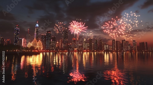 city lights, city skyline, hanukka, fireworks display
