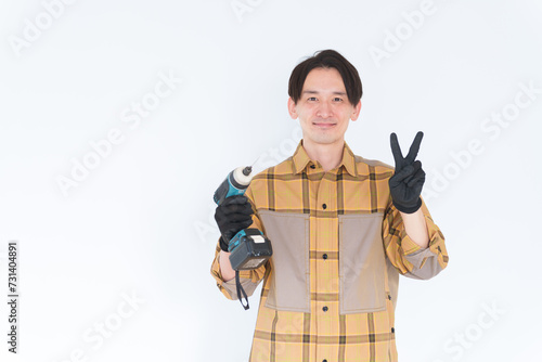 man, do it yourself, do it yourself, japanese, middle-aged, smile, pease, hustle, fun, lively, success, pursuit, tool, equipment, renovation, self, handcraft, woodwork, wood, working, creator, second hand, house, residence, fix, repair, makeover, maintenance, create, carpenter, vacation, asian, white background, people