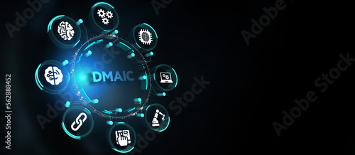 DMAIC, Six Sigma. Define, Measure, Analyse, Improve, Control. Standard quality control and lean manufacturing concept. 3d illustration