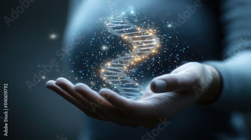 deoxyribonucleic acid, glowing, hand, sparkle, particle, light, genetic, science, concept, futuristic, medicals, biology, abstract, technology, visual, illuminated, health, human, innovation, modern, bright, scientific, digital, biological, future, molecular, energy, genetic