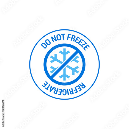 Do not freeze. Refrigerate. Food package label, storage instruction vector design